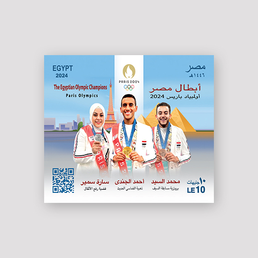 تصدر الهيئةُ القوميةُ للبريد بطاقةً بريديةً تذكاريةً تخليدًا لأبطال مصر المشاركين في الألعاب الأوليمبية "أولمبياد باريس 2024"، احتفالا بإنجازاتهم المشرفة ورفع اسمَ مصر وعَلَمَها عاليًا في المحافل الدولية.