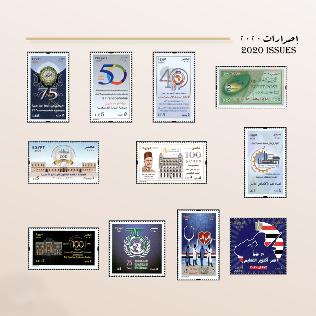 يحتوي الكتاب على طوابع الإصدارات البريدية التى صدرت لعام 2020