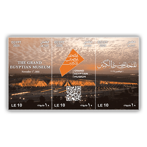 Egypt Post has issued a commemorative stamp sheet on the occasion for the oppining of "The Grand Egyptian Museum", as Egypt prepares to launch a long-awaited global event, representing the culmination of years of continuous work and a qualitative leap in the way ancient Egyptian civilization is displayed and documented.The Grand Egyptian Museum is considered a unique architectural masterpiece, built to be the largest museum in the world dedicated to showcasing a single civilization, and is located just two kilometers from the Giza Pyramids, covering an area of 500,000 square meters (117 acres).