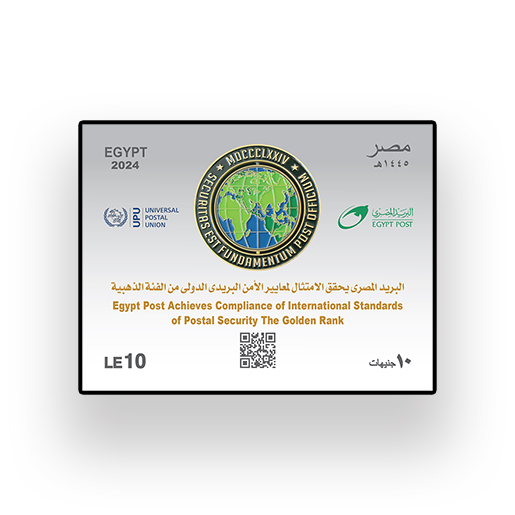 Egypt Post has issued a miniature sheet on the occasion of achieving the golden level in the international postal inspection review conducted by the Universal Postal Union on Egypt Post works, as regards the application of postal security standards on international supply chains. This certificate was received by Egypt Post during 27th session of the Postal Operation Council on 26 April, 2024 in the Swiss capital Bern.
