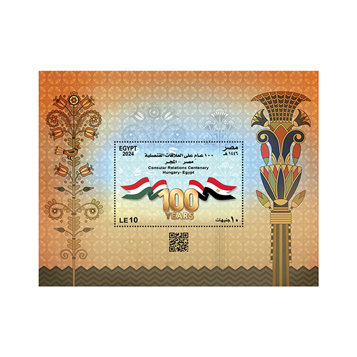 Egypt Post has issued a commemorative card on the occasionof the 100th anniversary of the establishment of consular relations between Egypt and Hungary, a joint issue issued in both countries to celebrate this occasion.